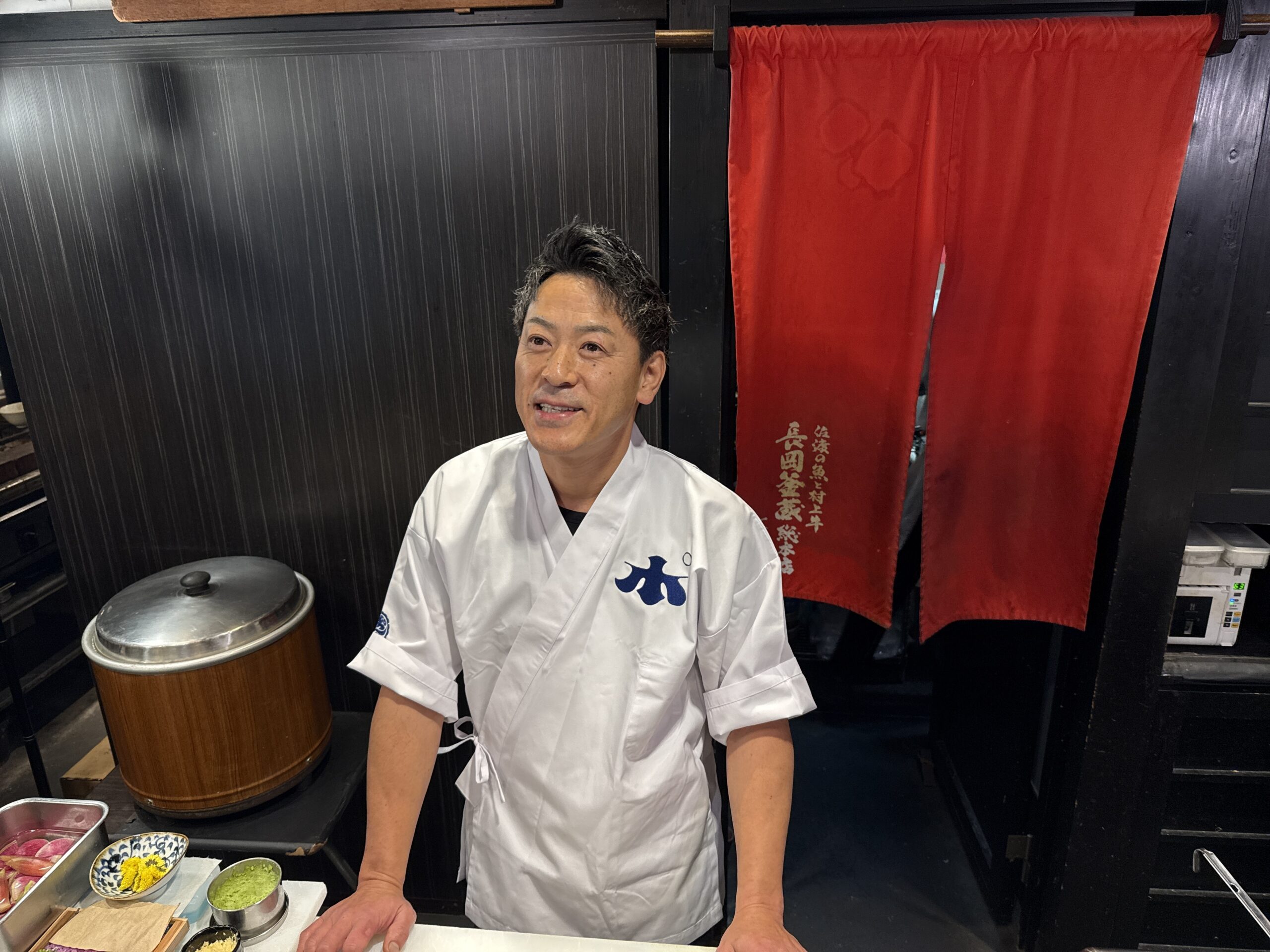 今回の料理を手がけてくださったのは、長岡市の「佐渡の魚と村上牛 長岡釜蔵総本店」さんです。店名にもあるように佐渡のお魚と村上牛、そして地元の旬の食材をつかった料理が美味しいお酒と一緒にエキナカで食べれるとの評判で出張の方やシニアの方々でにぎわっています。