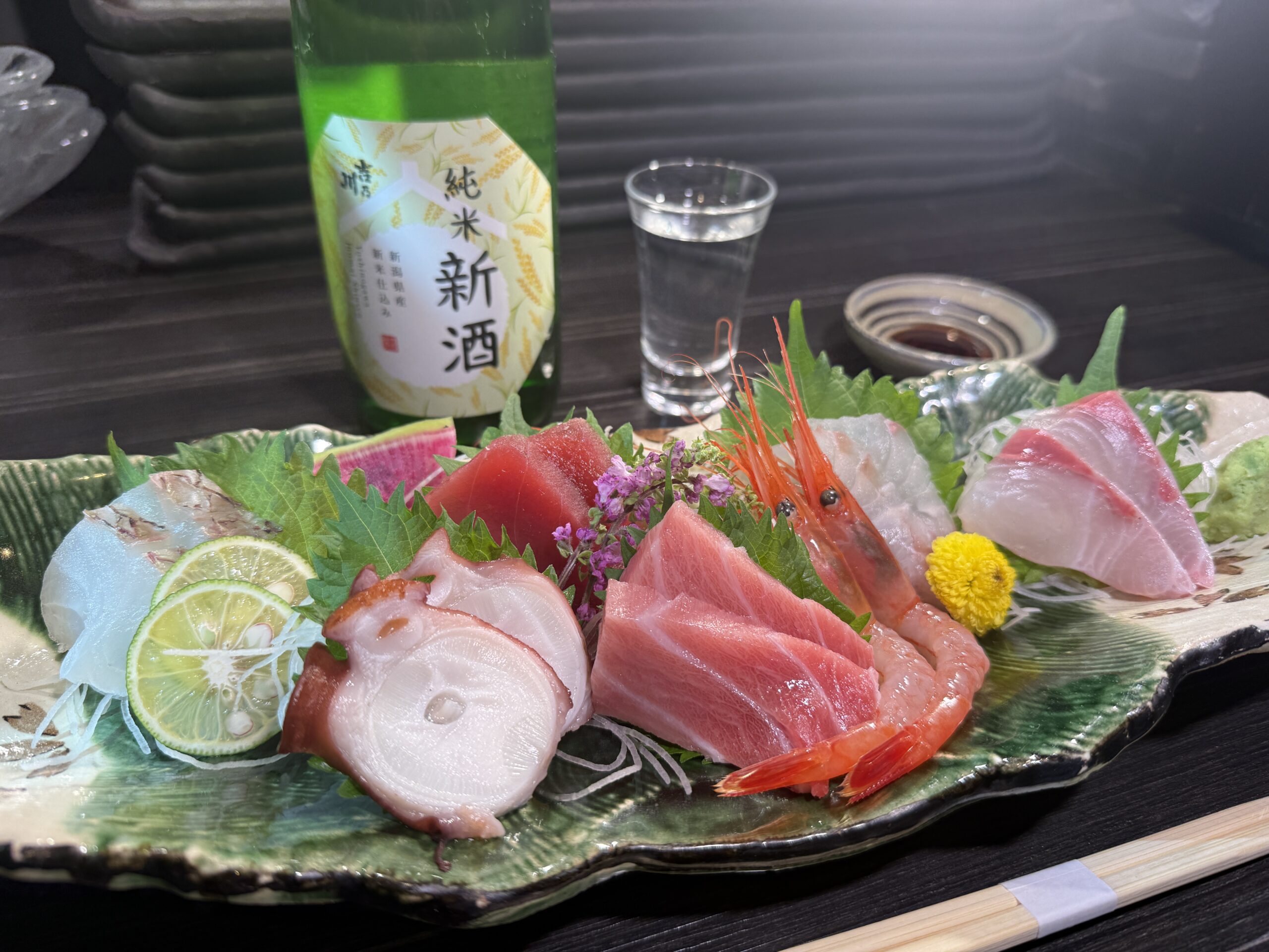さて、新潟県内の料飲店にお邪魔して、吉乃川のお酒に合うおつまみを考えてもらうこのコーナー「ほろ酔いOneDish」。今回料理を作っていただくのは長岡駅にあります「佐渡の魚と村上牛 長岡釜蔵総本店」さんです。今回は新米仕込み新酒 純米に合う料理を作っていただきました!