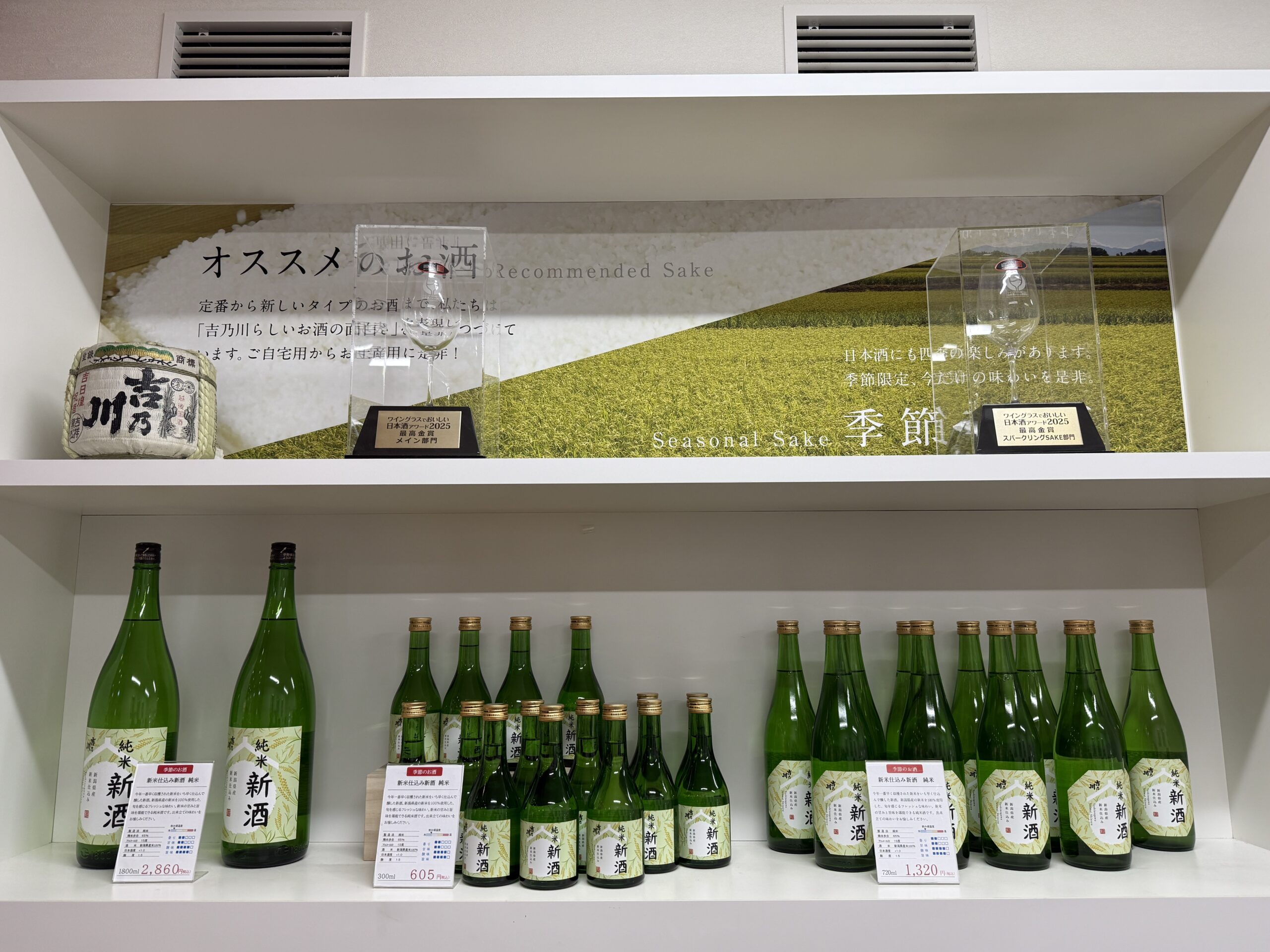 吉乃川では先月下旬に今回のご紹介するお酒「新米仕込み新酒 純米」が蔵出しとなりました。毎年このお酒を楽しみにされている方が多い人気のお酒です。この時期は、続々と美味しい食材が登場し、どの食材とペアリングするのか迷っちゃいますね。醸蔵や吉乃川CoCoLo新潟店でも、今宵の一杯をご用意してお待ちしております。ぜひ、お立ち寄りください。